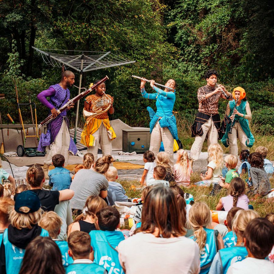 Dit jaar werkte we voor het eerst samen met muziekgezelschap Oorkaan. Het Cubaanse blaaskwintet Aires Tropicales blies met de kleurrijke voorstelling Zoemmm de vliegende en kruipende wereld nieuw leven in.