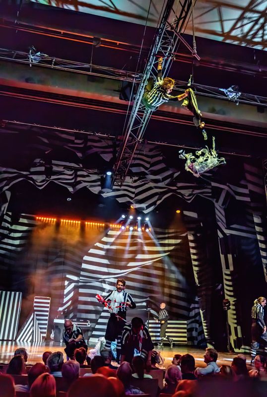 Om de grote hoeveelheid aan spullen, kostuums en instrumenten op tijd op de goede plek te krijgen, wordt er achter de schermen misschien nog wel harder gewerkt dan op het podium. De show vergt de precisie van een Zwitsers uurwerk. Pim lacht: “Onze mede-Ashton Brother Peter heeft onze werkwijze weleens ‘de voorstelling van 10.000 afspraken’ genoemd. Dat is het nu weer.” Friso: “Omdat het zo bewerkelijk is wat we doen, moet het fungeren als een geoliede machine. En iedereen is daarin even belangrijk. Als er één radertje mist, stort alles als een kaartenhuis in elkaar. Als onze toneelmeester Mees het vuur in één scène niet goed blust, kan het theater in de fik vliegen. Of als een ander een touw niet goed vastmaakt, donder ik van zes meter naar beneden. We kunnen gewoon niet zonder elkaar, ook hierin zijn we broers.”