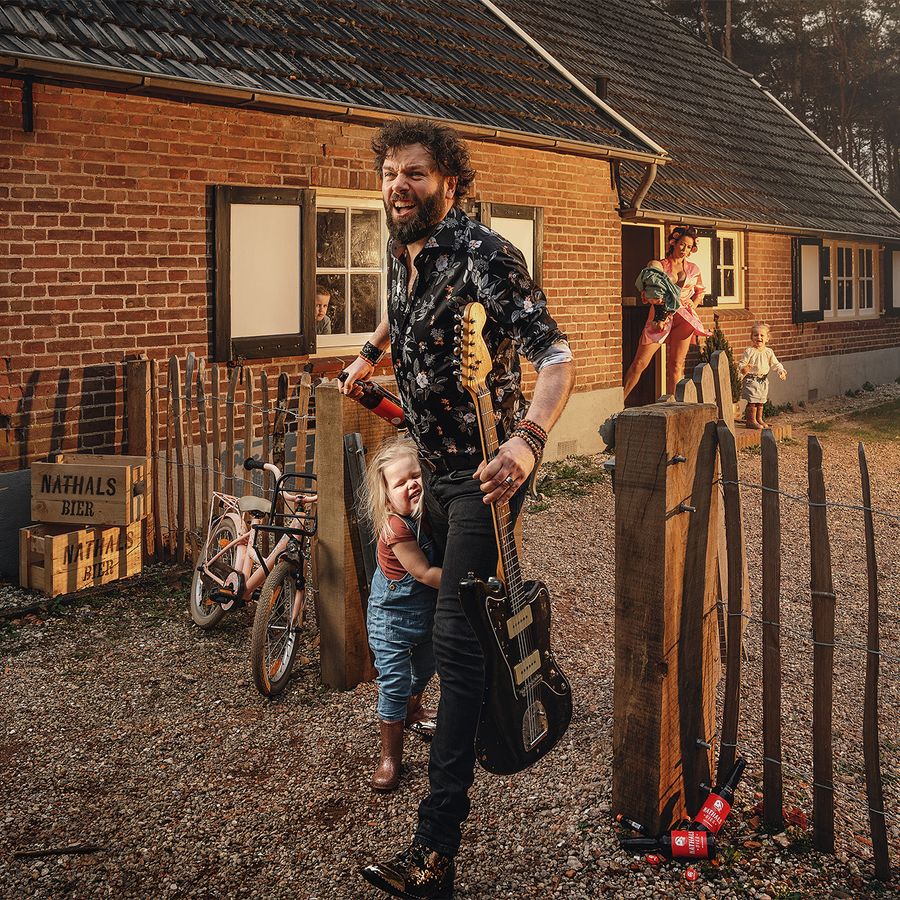 Nachtelijke optredens waarbij bier rijkelijk vloeit en het testosteron tegen het plafond knapt, de bandbus die bij het krieken van de dag de oprit opdraait en het gezin dat tegelijkertijd ontwaakt en zich opmaakt voor een nieuwe dag: een waar dubbelleven is het, waarbij de rol van rock ’n roller naadloos overgaat in die van familieman!