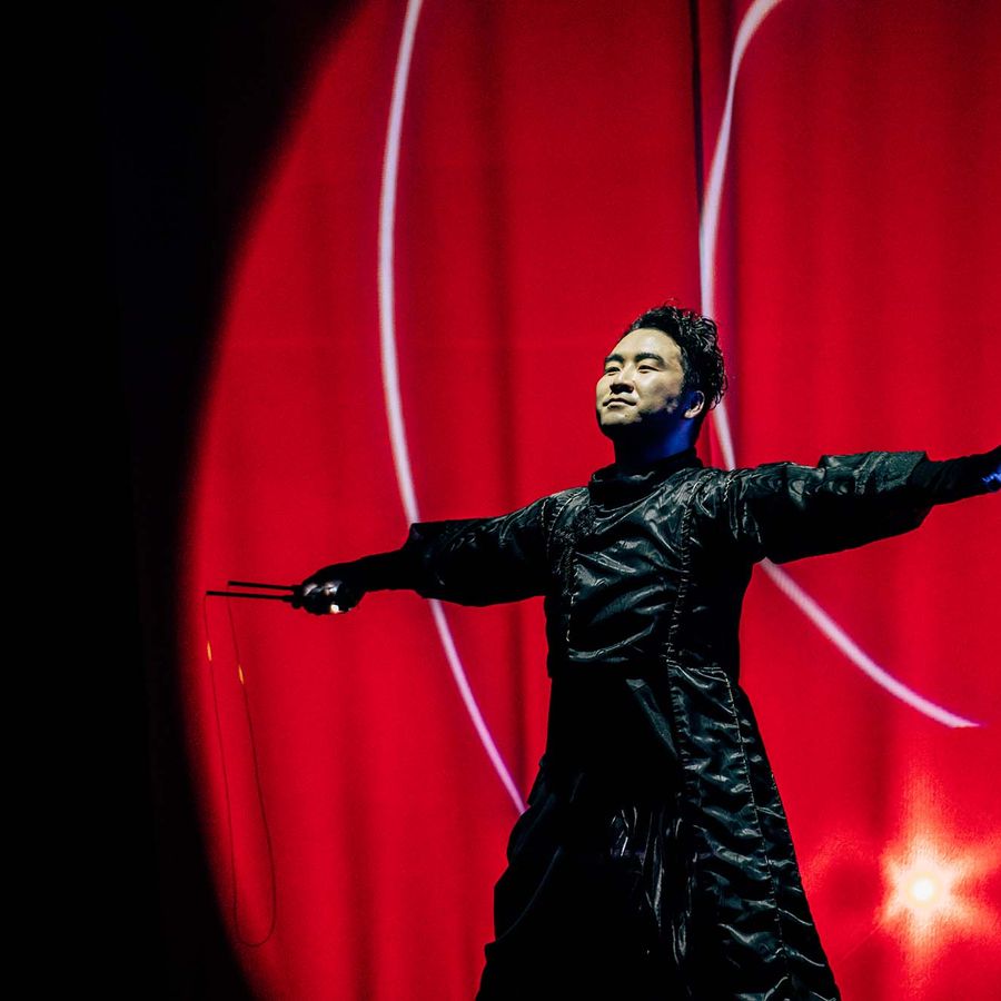 “Ik heb mezelf altijd gezien als een multimediaartiest, die circus, zoals jongleren, combineert met video, licht, geluid en technologie. Daarom probeer ik allerlei visuele elementen te integreren in mijn optredens. Maar tijdens dit proces liep ik wel tegen het feit aan dat hoe meer we op technologie vertrouwen, hoe meer de pure menselijke expressie onder druk komt te staan. Ik wil geen ‘industrieel product’ creëren, maar een pure kunstvorm die voortkomt uit menselijke creativiteit. Daarom is het cruciaal om de technologie in evenwicht te brengen met fysieke expressie en filosofie. Dat is waar elementen uit de Japanse Zen-cultuur om de hoek komen kijken. Elk element dat we gebruiken in YOAH wordt gevormd door het streven naar de eenvoud, waardoor de essentie van de performance puur en impactvol blijft. Een hybride maar minimalistische benadering.”