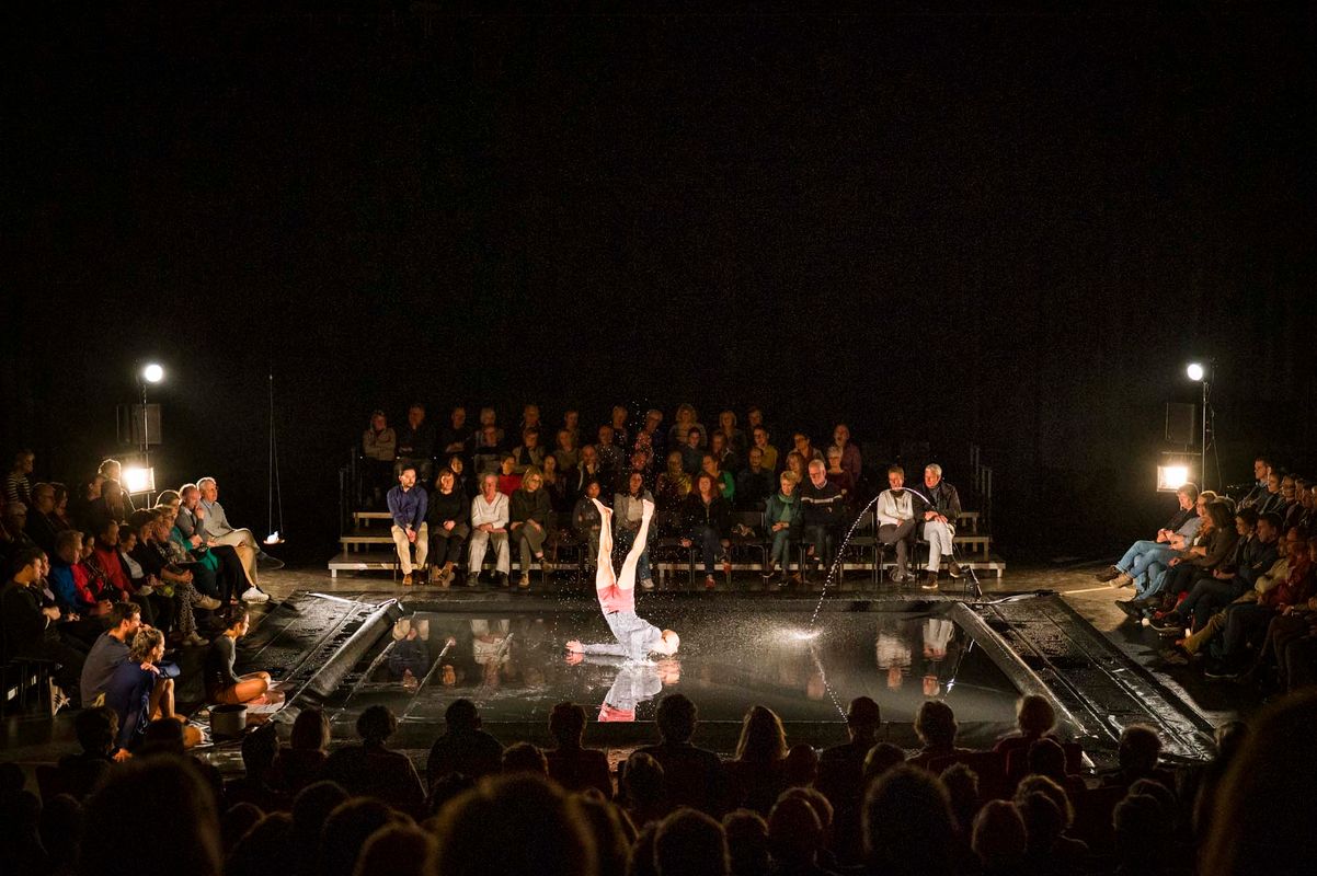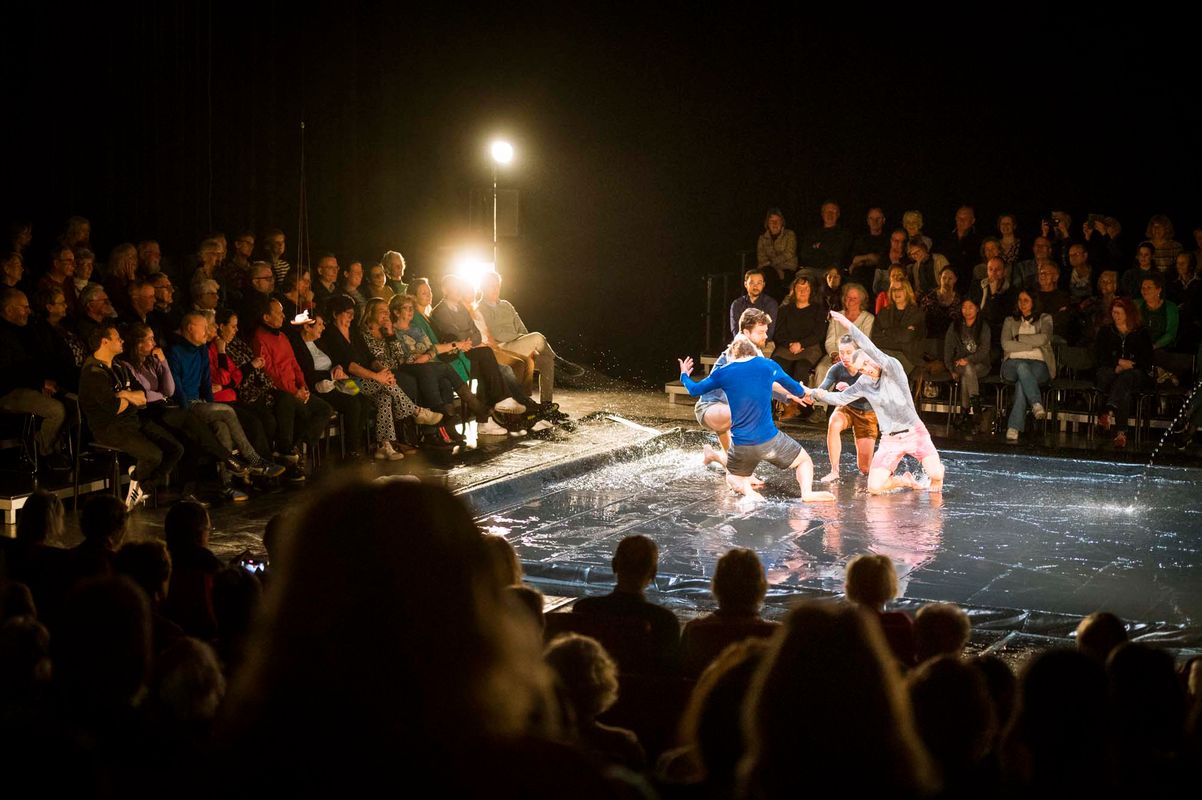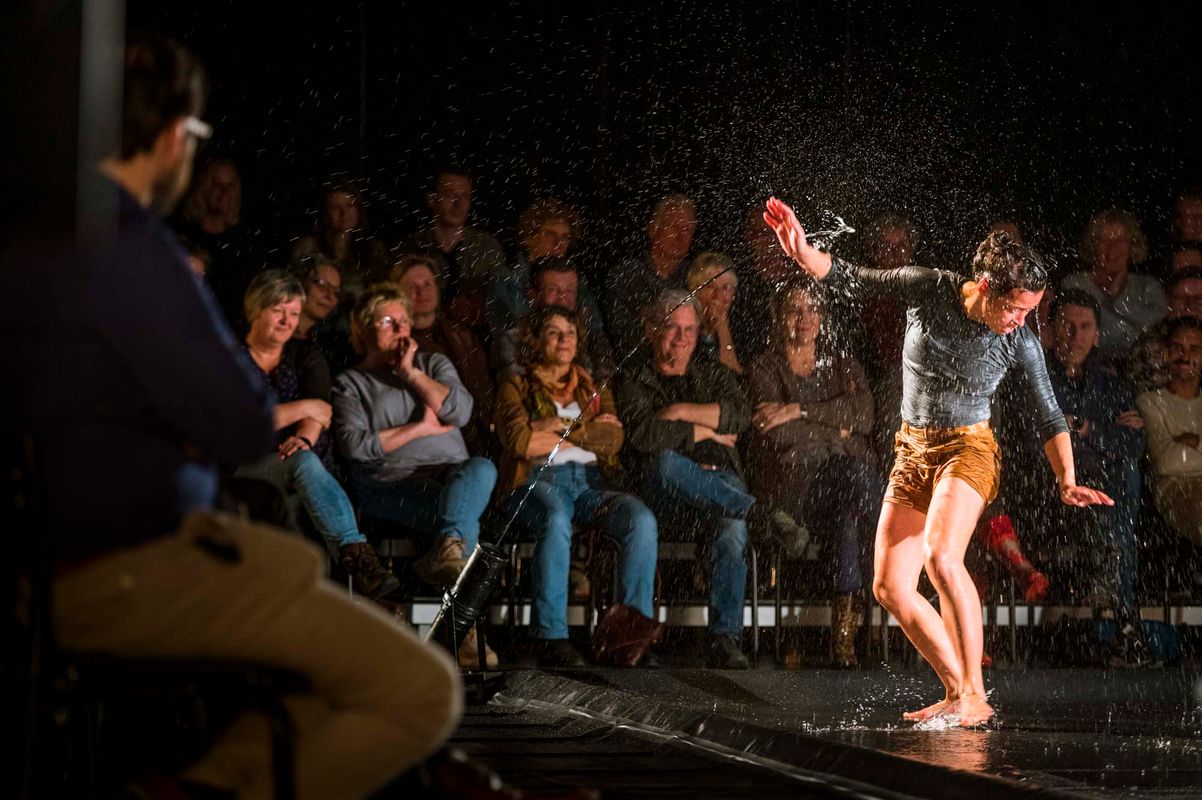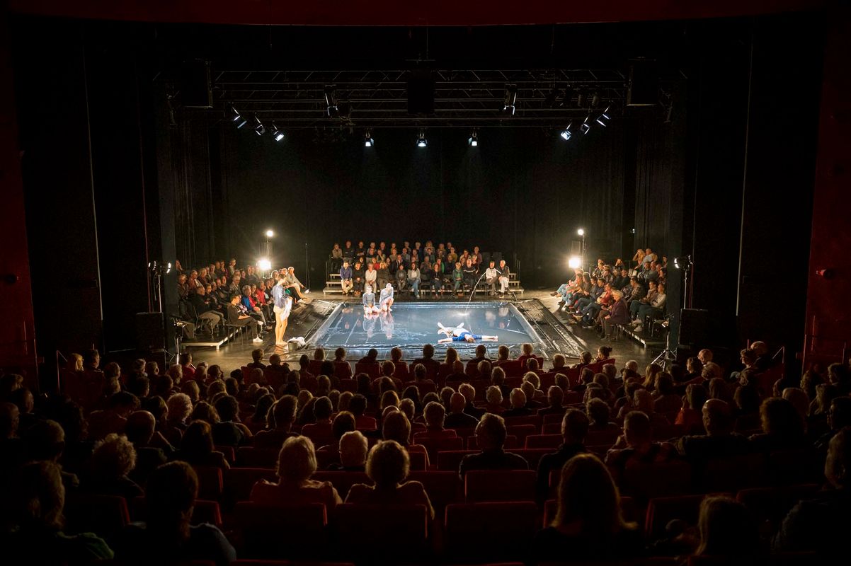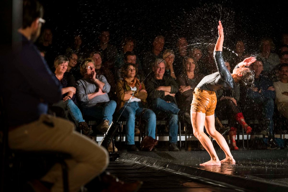 “We kiezen bijzondere voorstellingen van hoog niveau die zowel interessant, relevant als uniek van karakter zijn. Prikkelende en vernieuwende producties in bijvoorbeeld muziektheater, dans of circus. Daarbij gaat het om een voorstelling door veelal (nieuwe) makers die nog geen grote naamsbekendheid hebben. Voorstellingen die iets toevoegen en een verhaal opleveren dat je nog niet kent. Uit het brede pallet aan mooie producties, maar ook onverwacht succesvolle voorstellingen, pikken wij de krenten uit de pap. Zo hadden wij het afgelopen seizoen het spectaculaire Surface van het internationale gezelschap Familiar Faces. Waarin water over het podium sijpelde, zoals je op de cover van het Magazine kunt terug zien. We zetten onze Rabobankzaal in de tribunestand zodat je een groot vlakke-vloer theater creëert. Eigenlijk een verlengde van de kleine zaal.”
