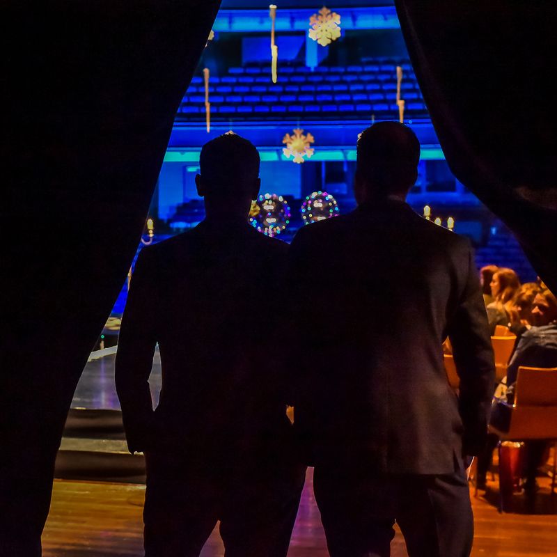 Scene 1: bij de artiesteningang, ontvangst en voorbereidingen
