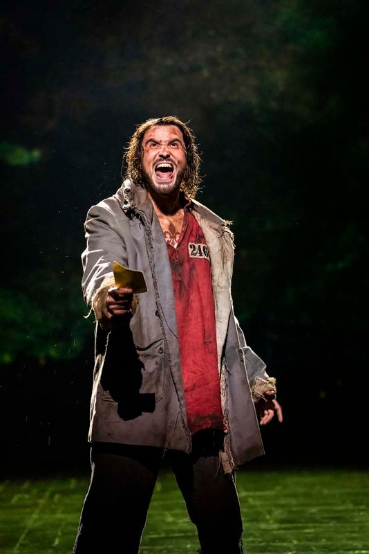 "de meeste indruk maakt Milan van Waardenburg (Jean Valjean). Wie twijfels had of een 29-jarige geloofwaardig een getergde gevangene kan spelen die zich opwerkt tot burgemeester en uiteindelijk een oude strijdende man wordt: Van Waardenburg kan het. Je gelooft hem helemaal als een schuwe, mishandelde ex-gevangene, én als een oude, wijze en doorleefde man. In zijn warme stem hoor je de rauwe rafels die Valjean door alle butsen opliep. Zijn ogen weerspiegelen levenservaring. Een enorme prestatie."