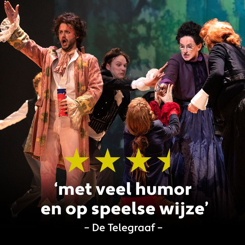 "Maar de verrassing van de avond en eigenlijk het allerleukst aan deze voorstelling is Alex Hendrickx in de rol van keizer Jozef II. Het lukt hem zowel een pruilend kind als een groteske monarch te spelen, en dat allemaal met een enorm komisch talent, vol energie en vooral spelplezier. "