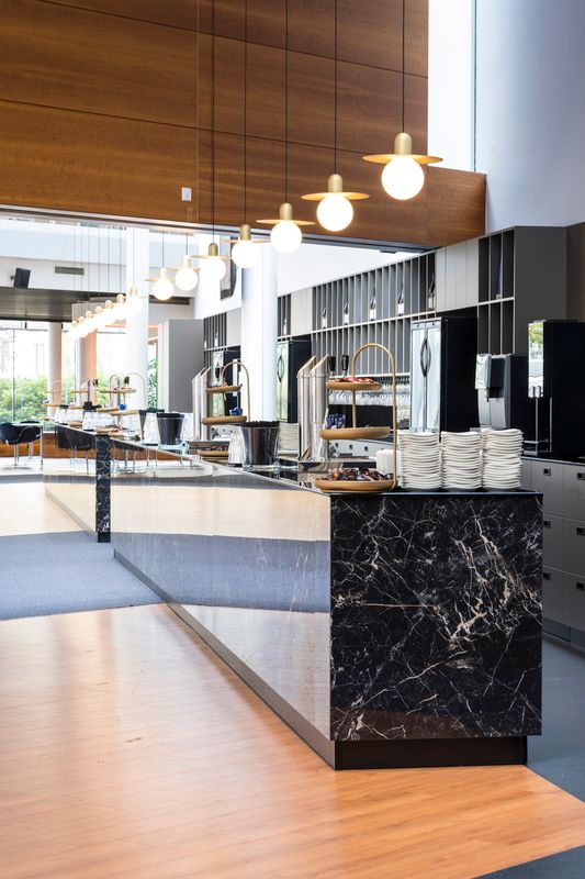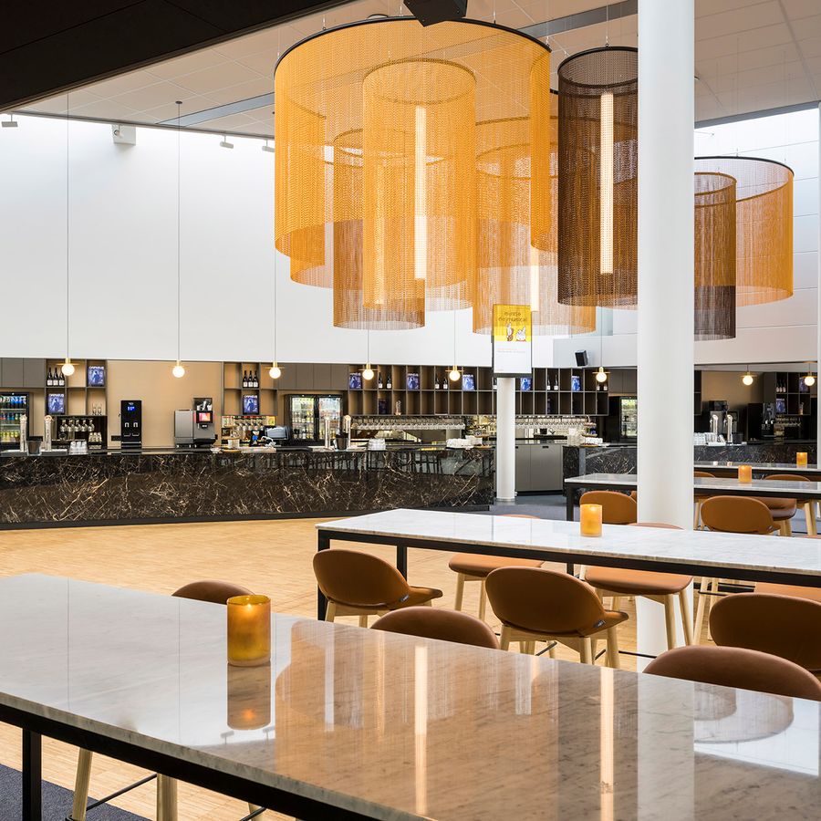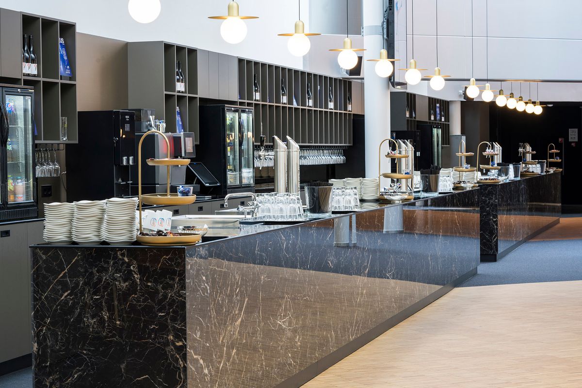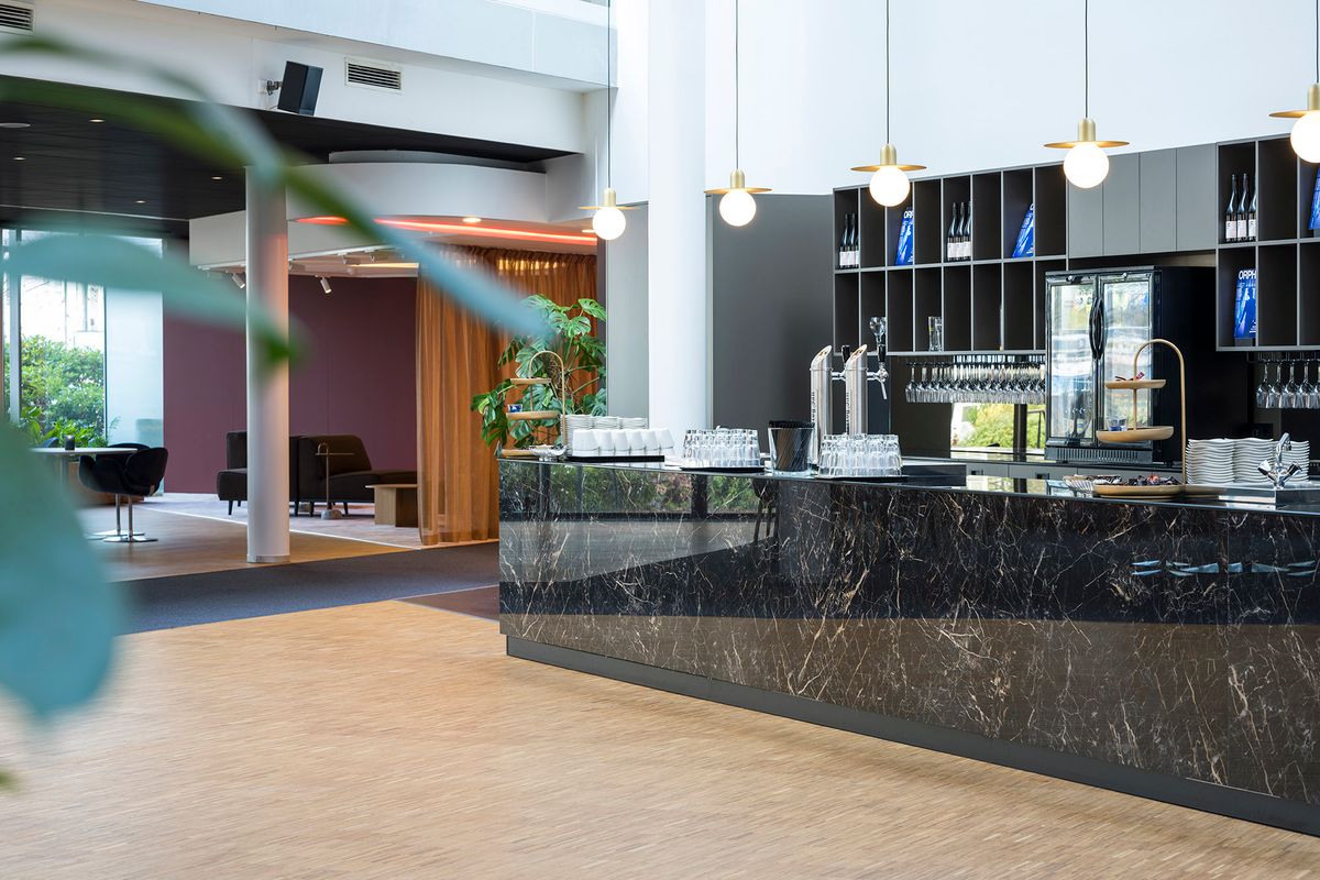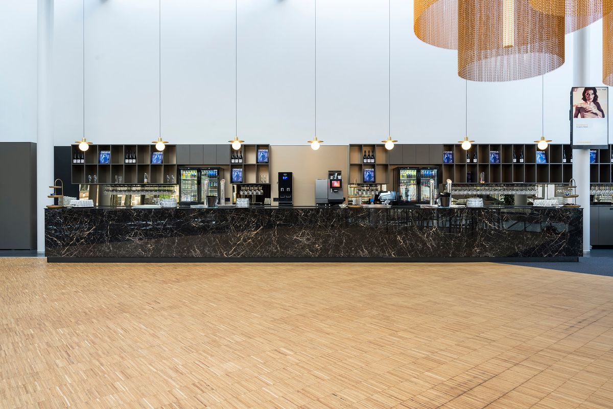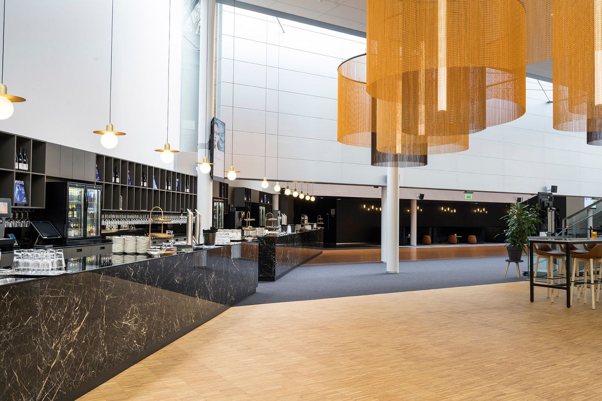 Eyecatcher van de vernieuwde foyer is een geheel nieuwe bar die de twee oude barren vervangt. Maar liefst 22 meter lang, zo ingericht om wachtrijen tot een minimum te beperken, afgewerkt met een fraai marmeren look en een imposante barkast. In het oog springt ook de prachtige kroonluchter, gemaakt van duizenden goud- en koperkleurige aluminium schakels.