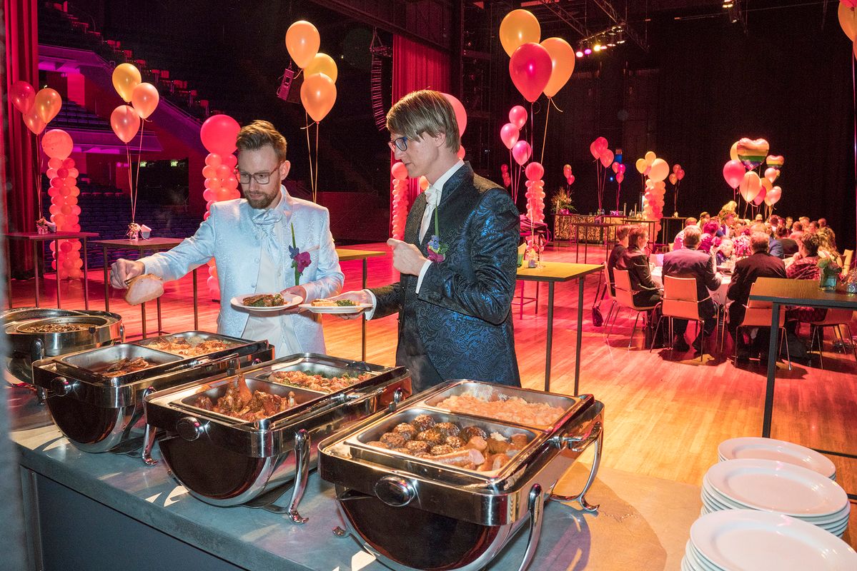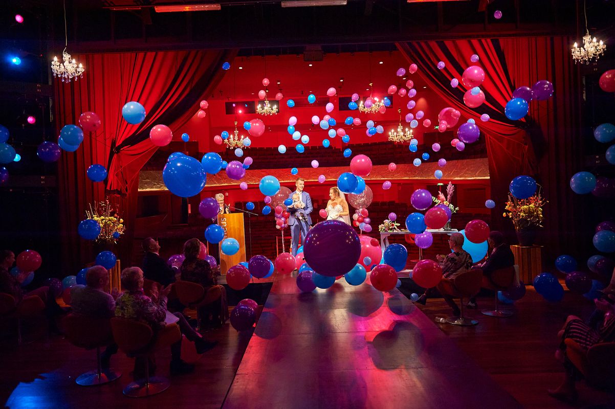 Orpheus is een officiële trouwlocatie en dat betekent dat de ambtenaar van de burgerlijke stand jullie huwelijk hier kan voltrekken (klik hier voor meer informatie). Natuurlijk nodig je je familie en vrienden uit om hierbij aanwezig te zijn en hef je samen met hen het glas op een mooi en lang leven samen. Maar dat is pas scene 1 van jullie huwelijksdag! In Orpheus kun je terecht van huwelijksvoltrekking tot en met een knallend feest. Het kan allemaal!