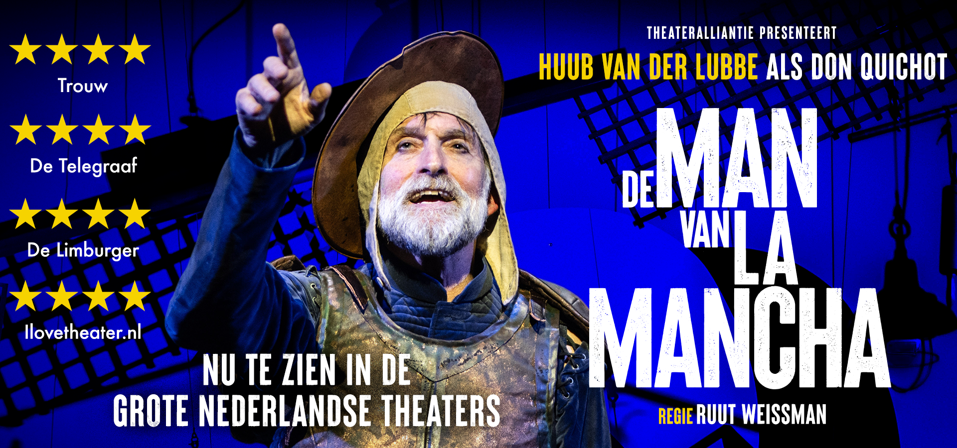 De Man van La Mancha vertelt het aanstekelijke verhaal van de idealist Don Quichot. Het ritme van de flamenco bepaalt de hartslag van deze nieuwe en eigentijdse enscenering van de geliefde musicalklassieker. Naast Huub van der Lubbe schitteren Dragan Bakema als Sancho Panza en Lucretia van der Vloot als Dulcinea.